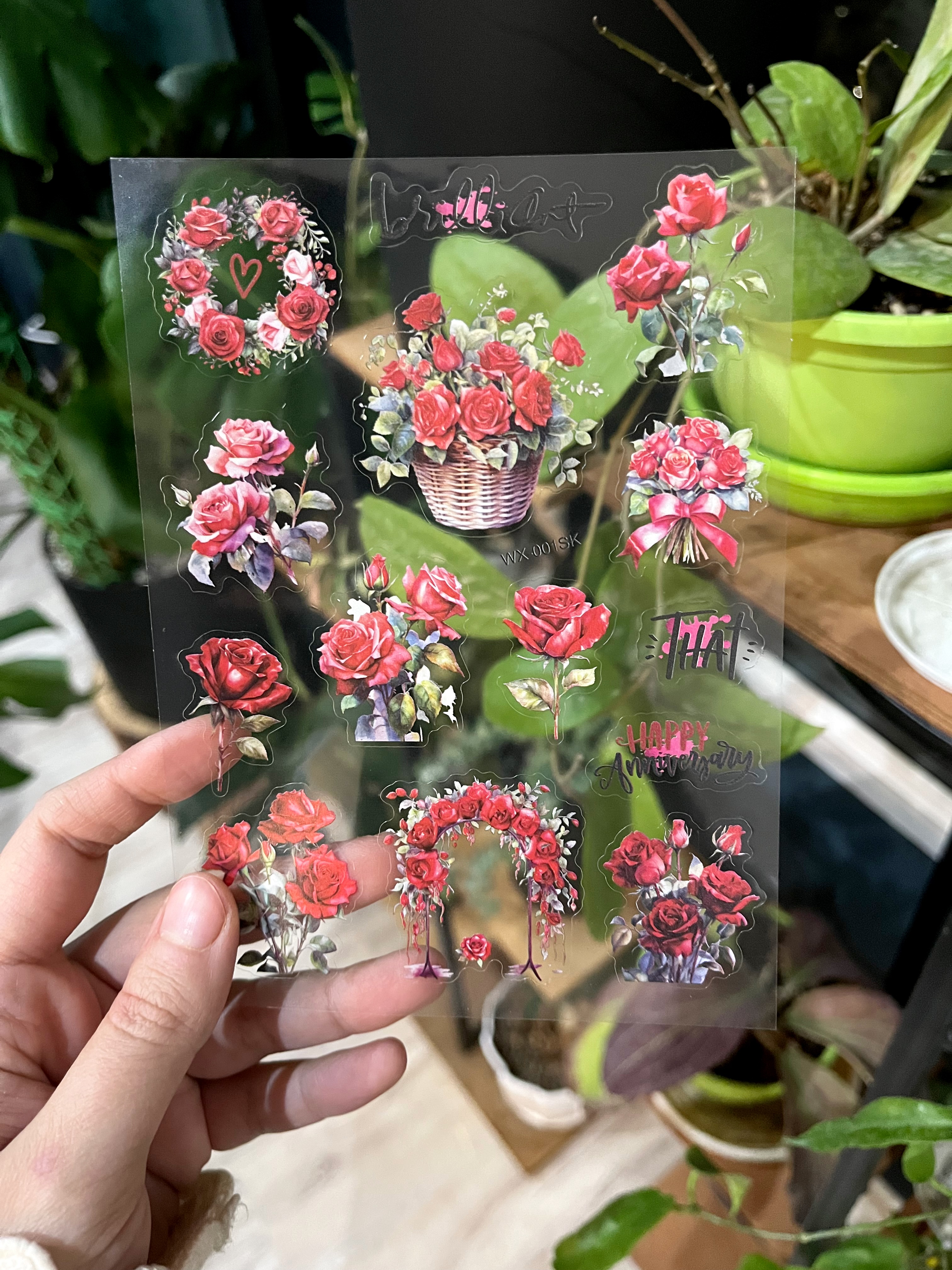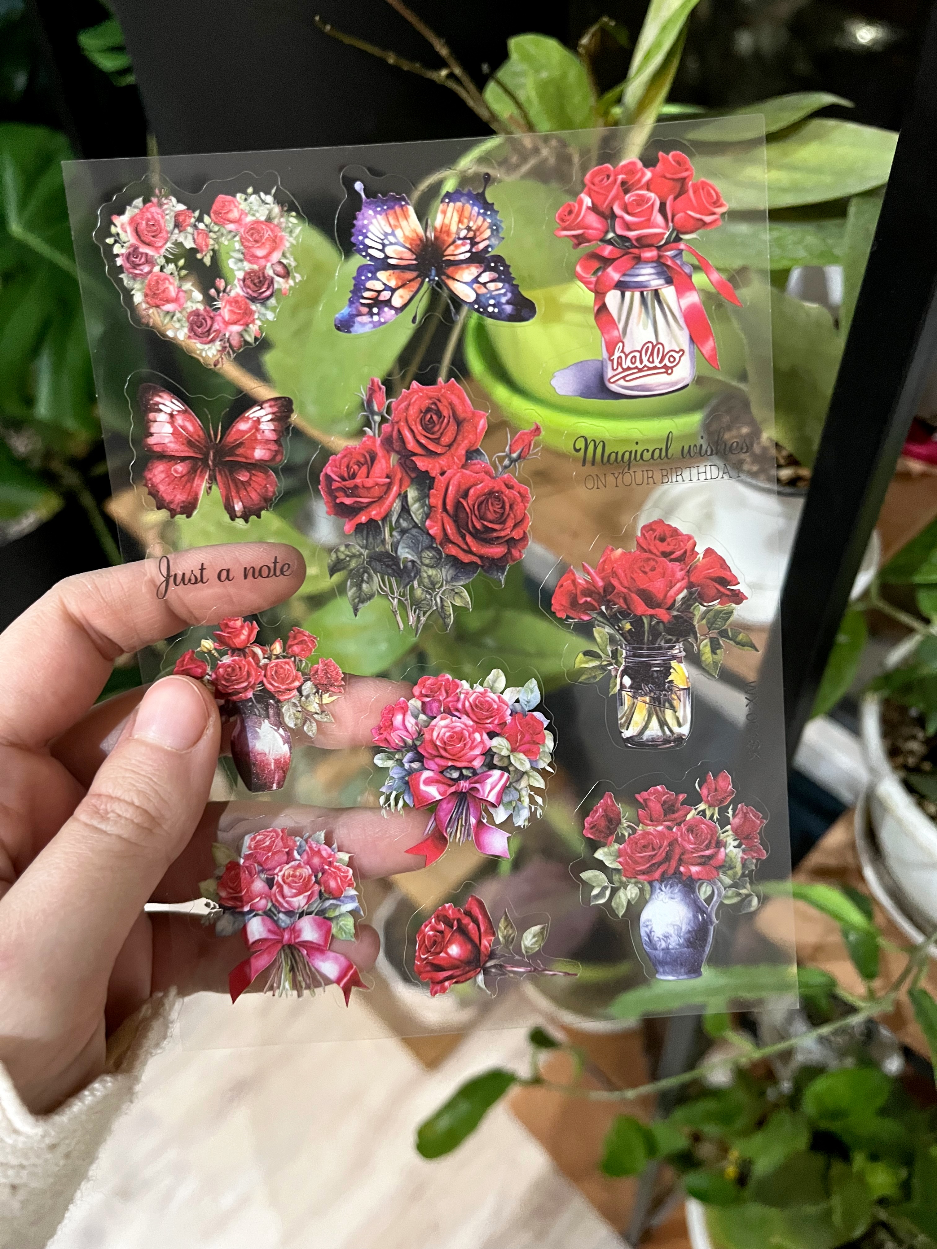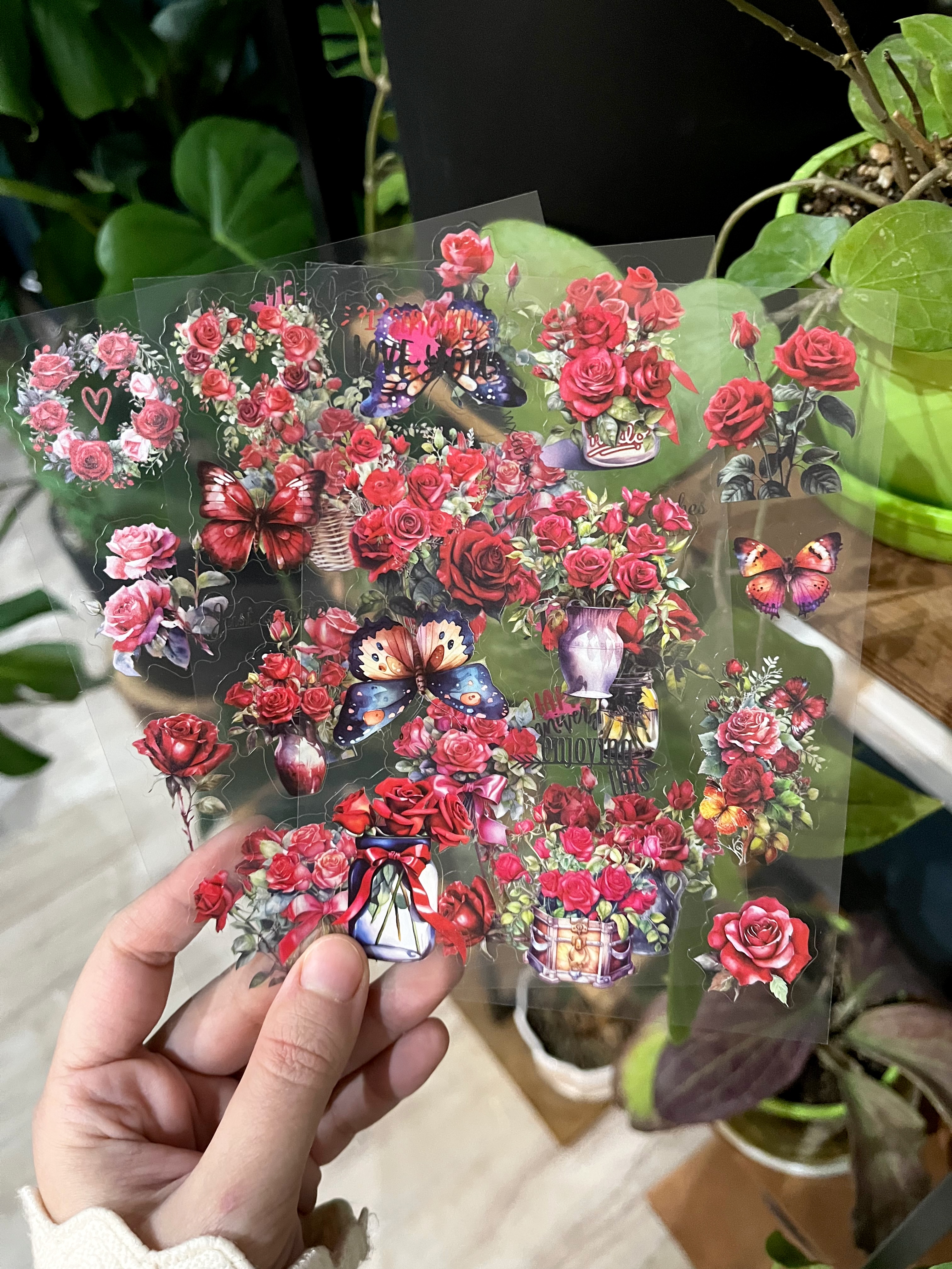 استیکر شفاف سه ورقی طرح گل های قرمز ۲