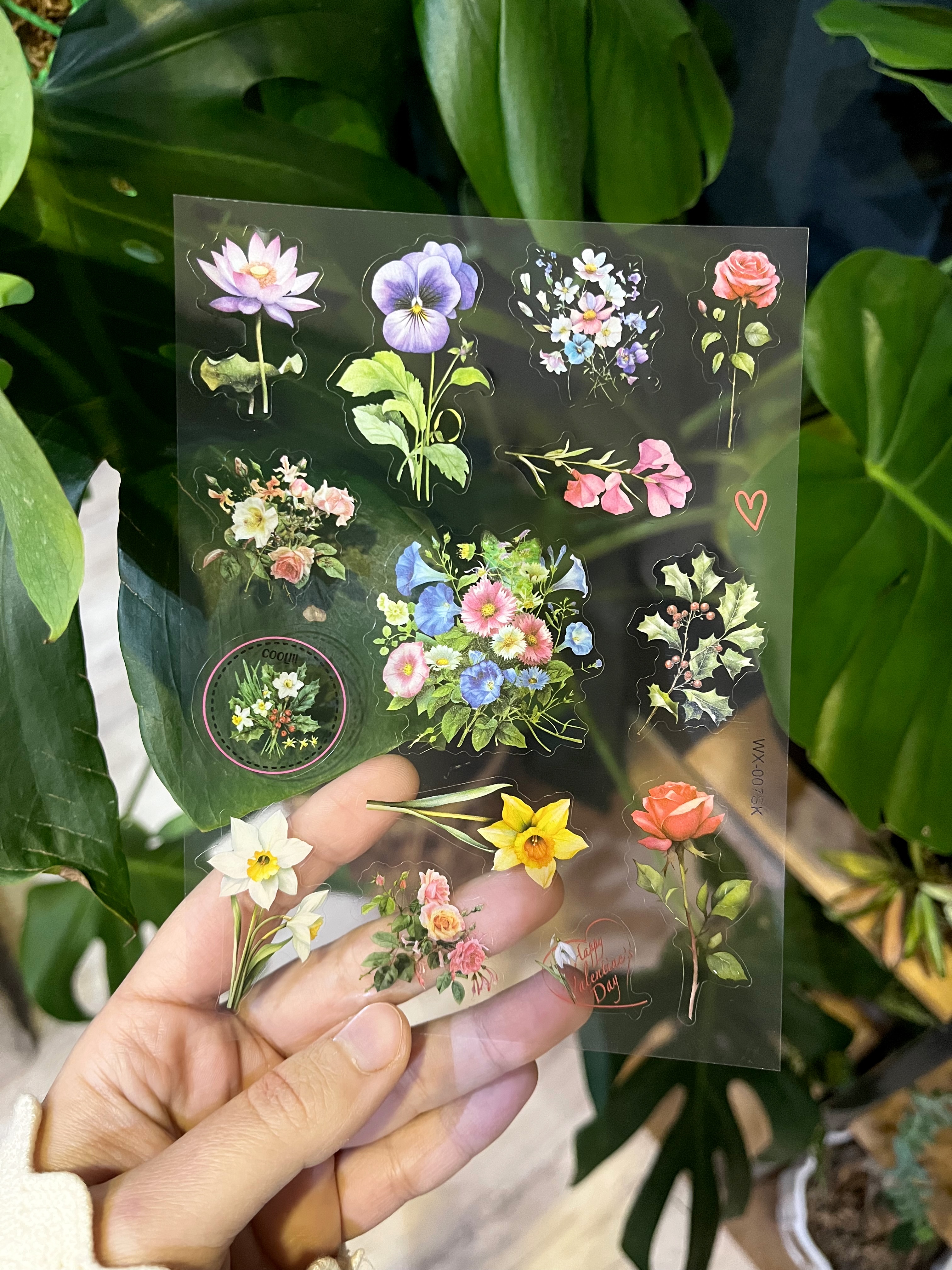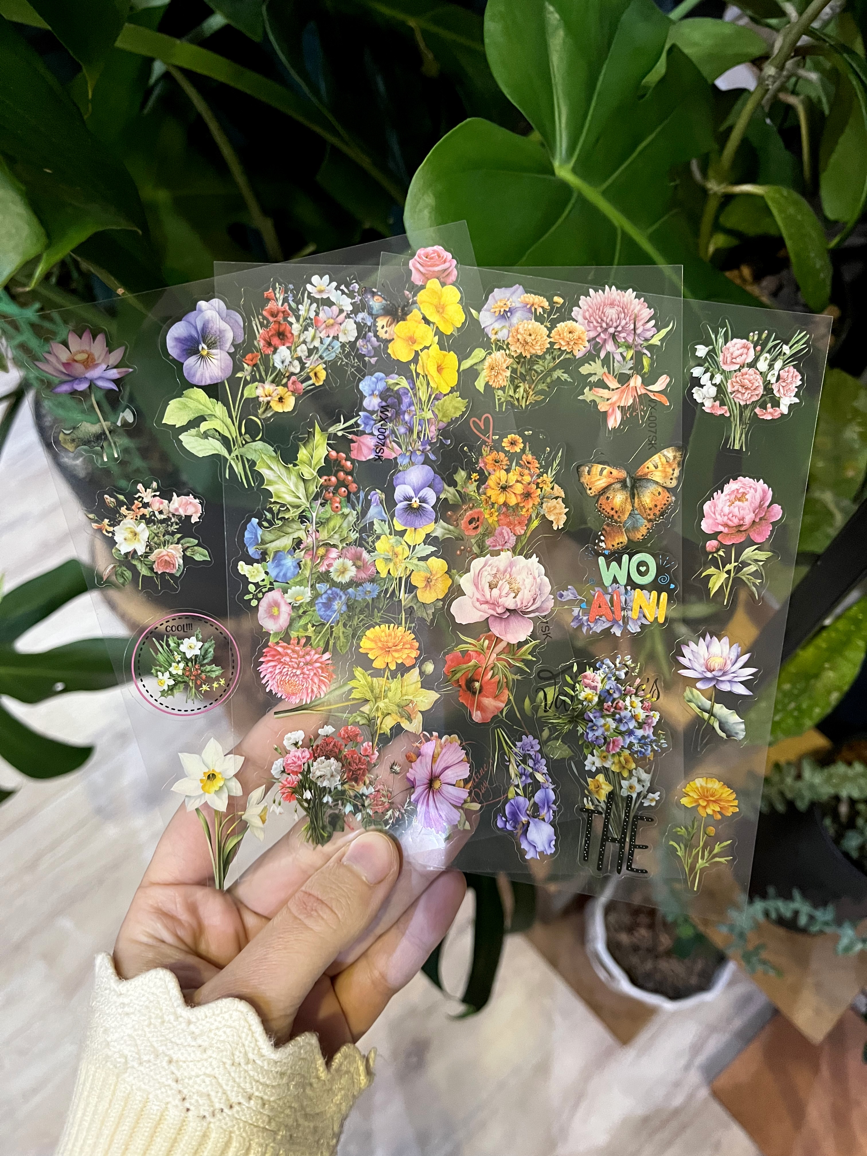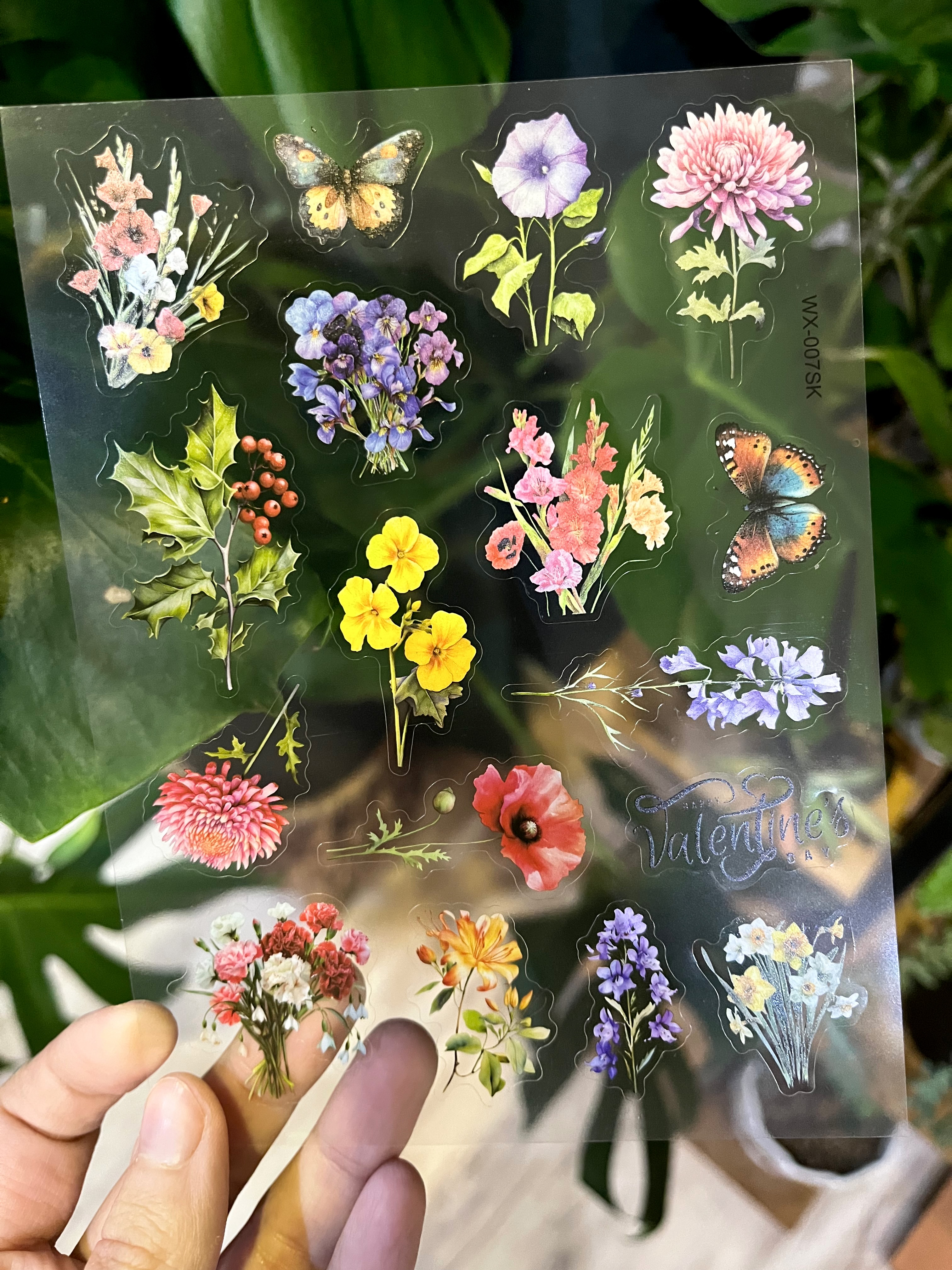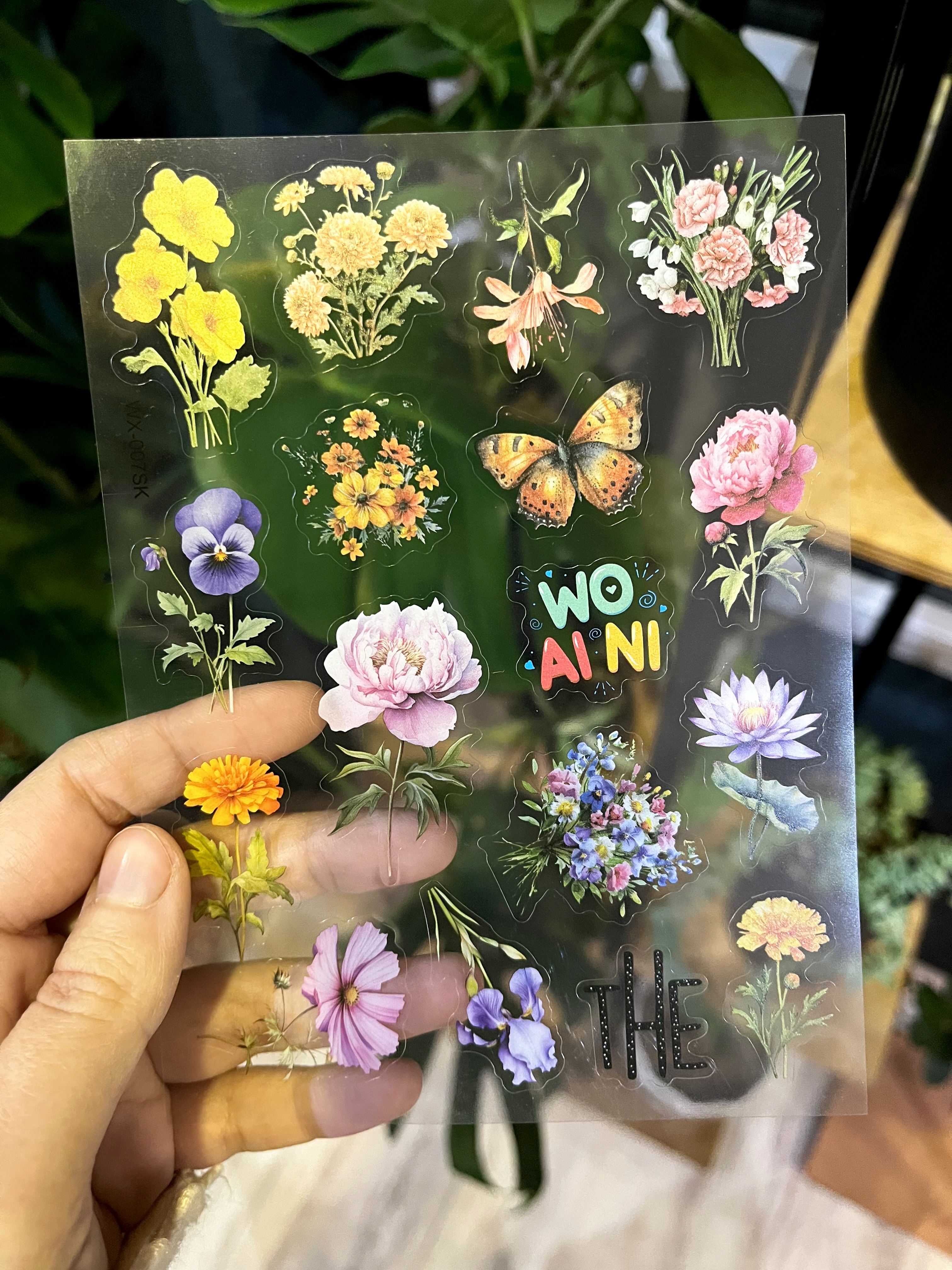 استیکر شفاف سه ورقی طرح گل های رنگی ۱
