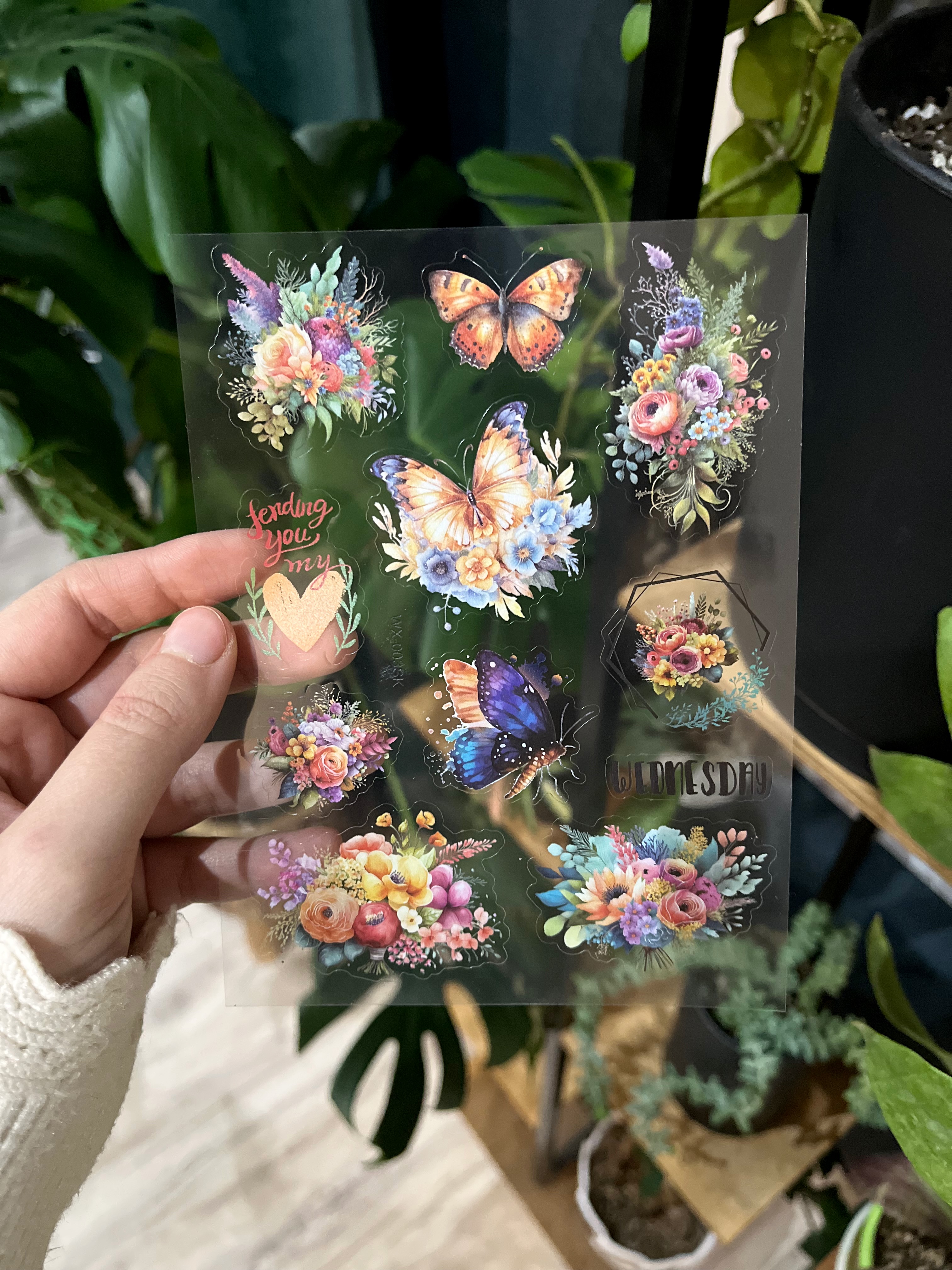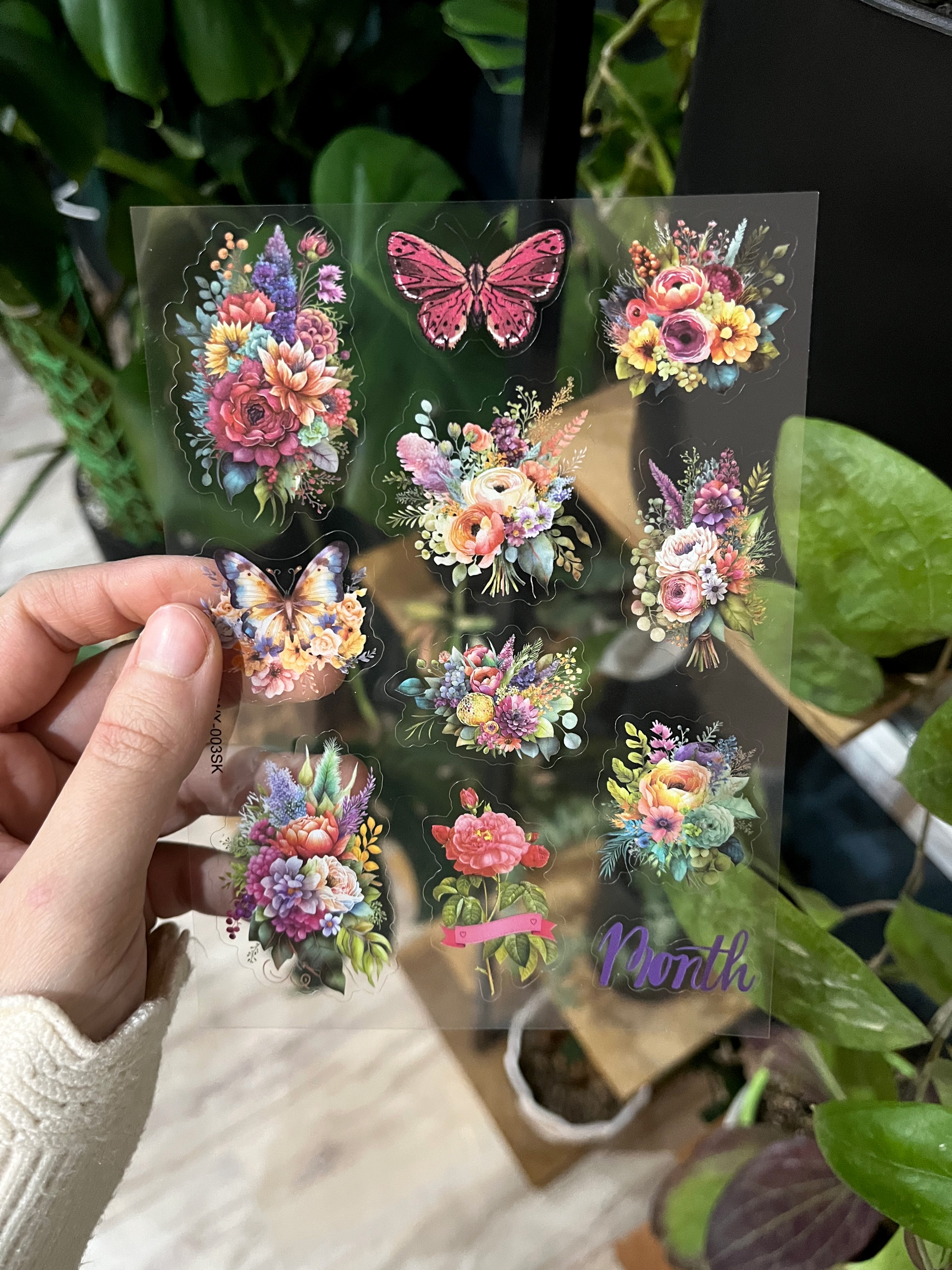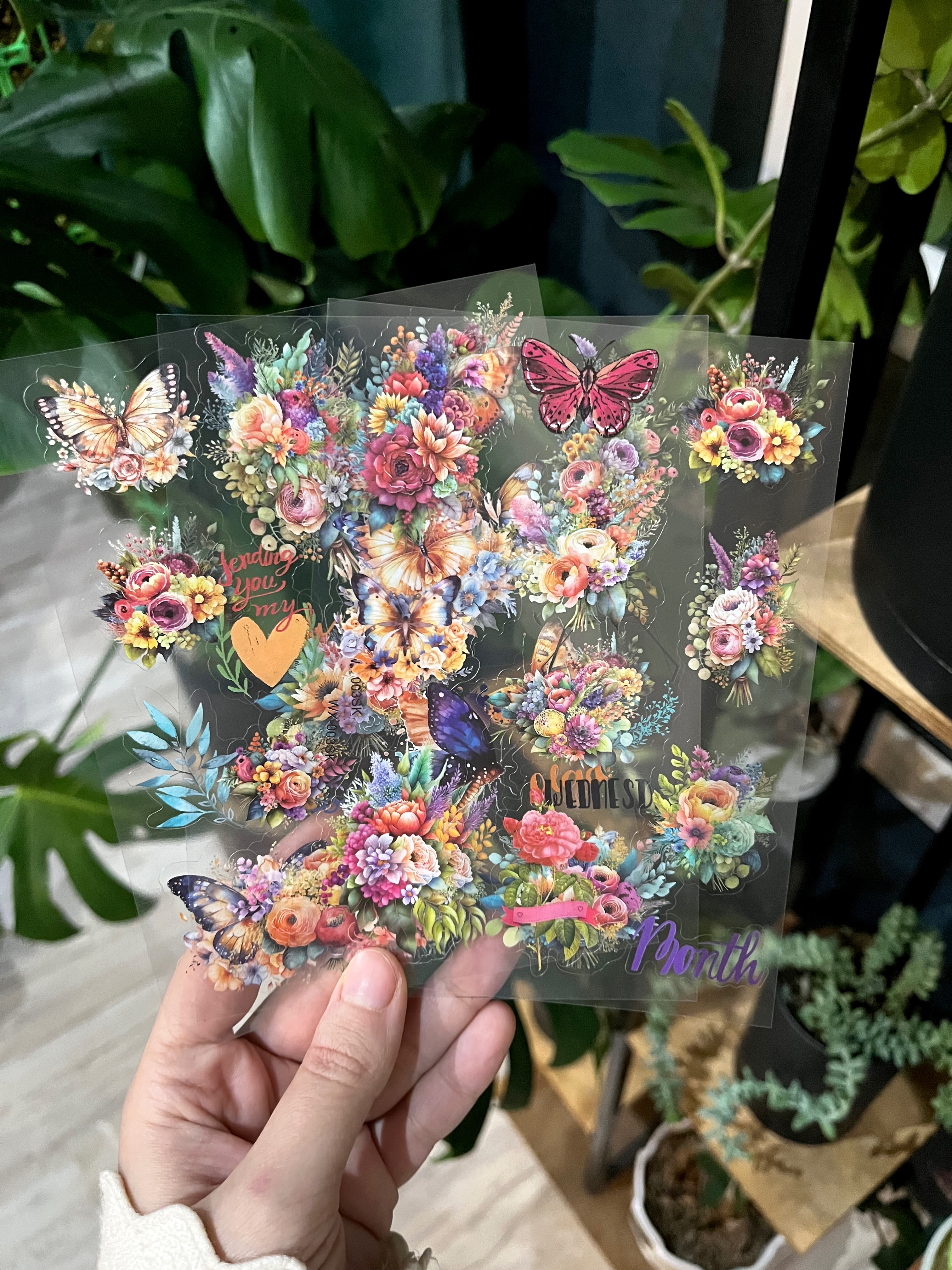 استیکر شفاف سه ورقی طرح گل های رنگی ۲