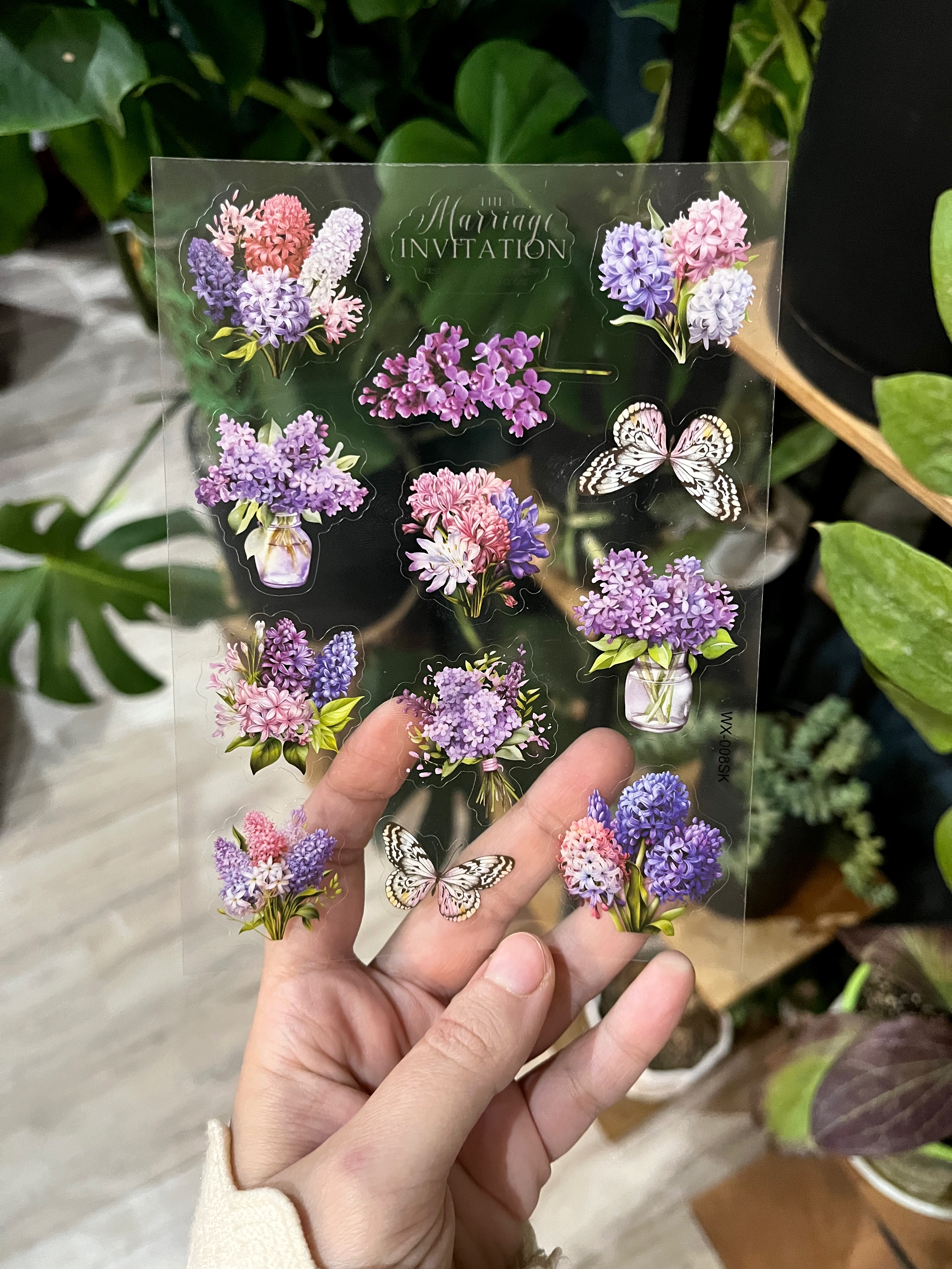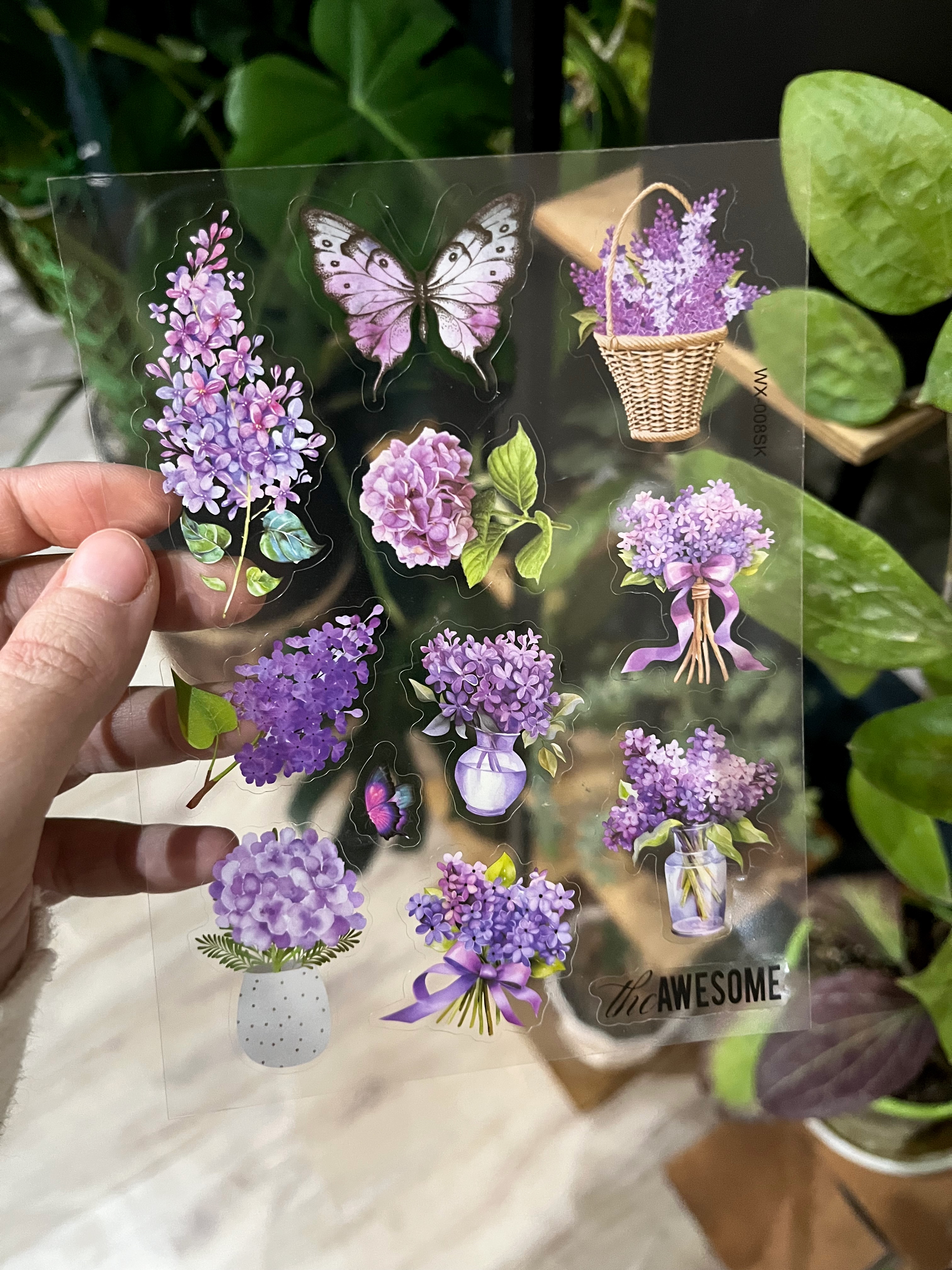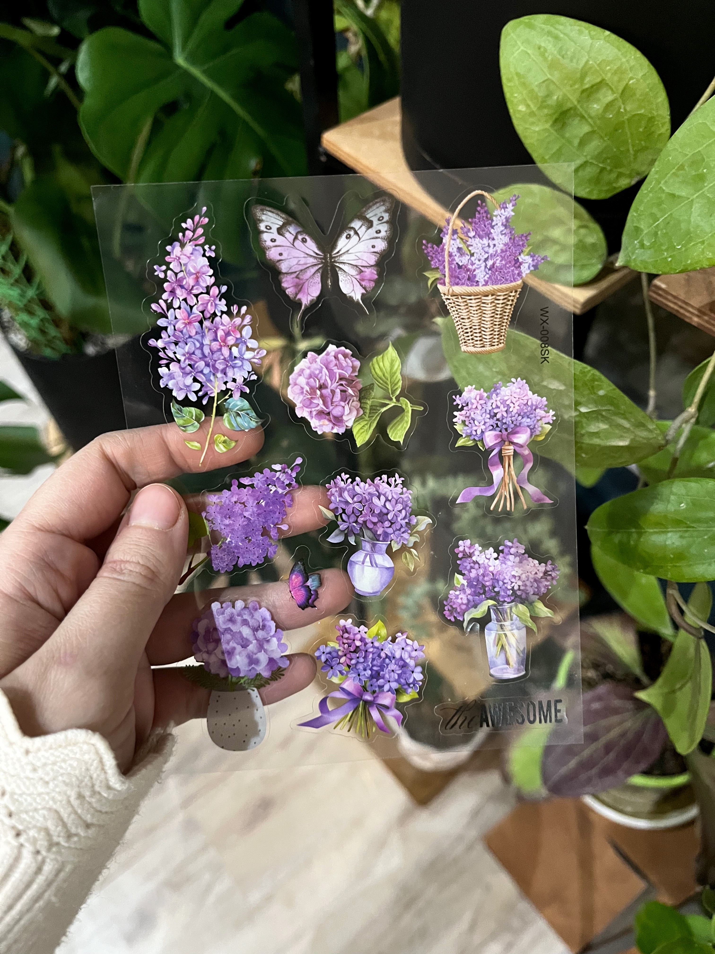 استیکر شفاف سه ورقی طرح گل های بنفش